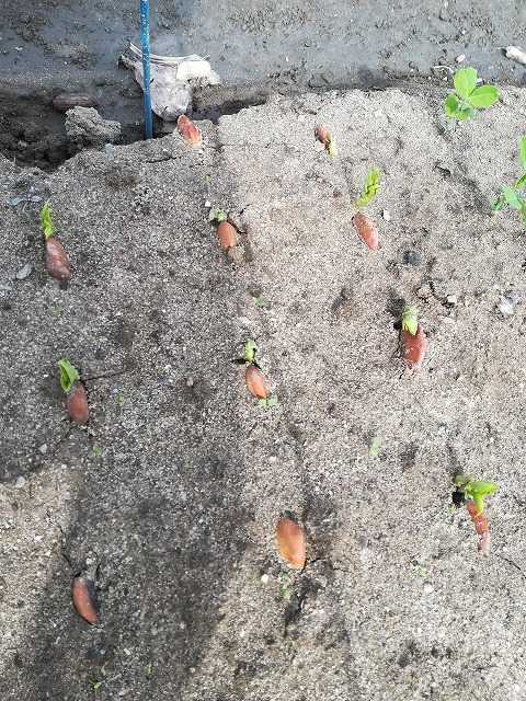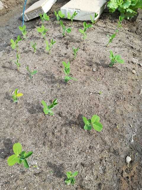 自家採種したスナップ、ソラマメ、絹さやは今年は発芽率がよく