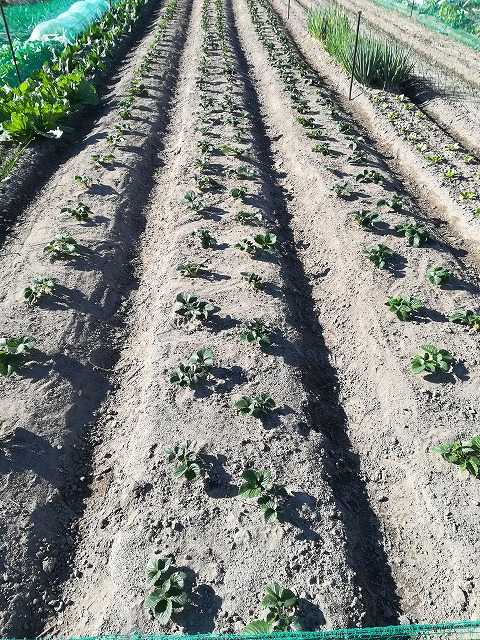 古い葉、脇芽、花、草を取り除き、畝をならしておきました。