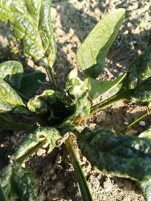 ホウレンソウも全部ではないですが、同じように葉が枯れています。
