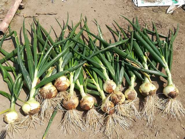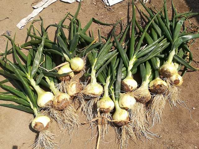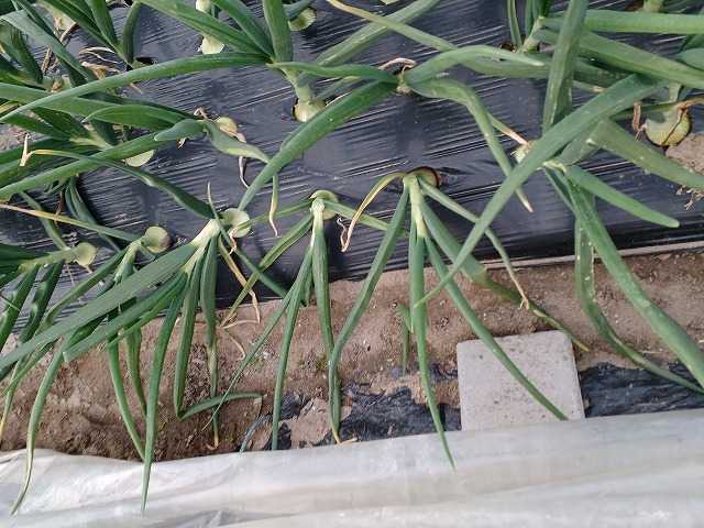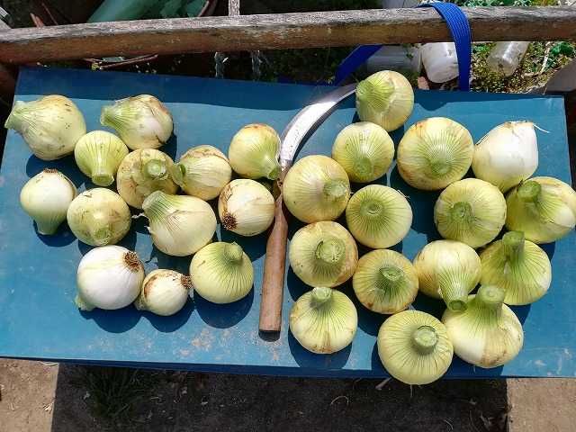 極早生玉葱もまだ小さめでしたが、葉が倒れ始めました。