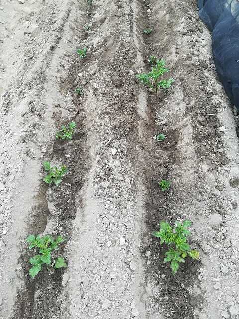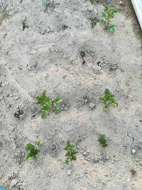 昨春の小さなインカのめざめの芽が出たものがあったので