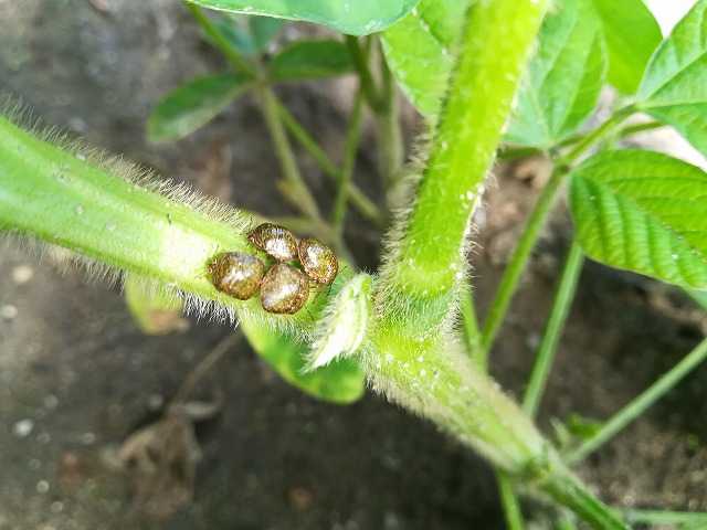 定植した肴豆、丹波の黒豆にカメムシが着いていました。