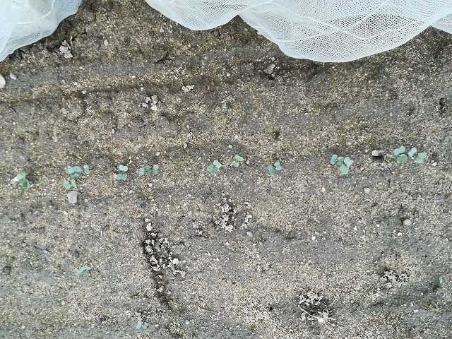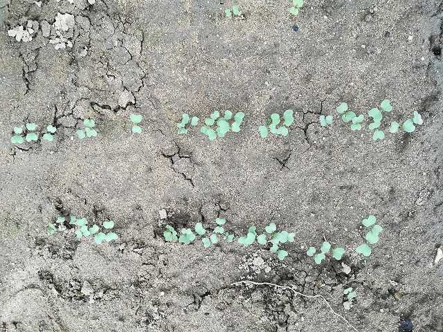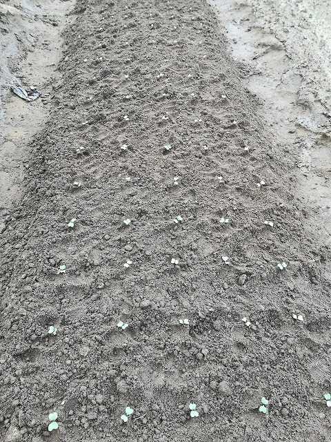 大雨の直前に播いてしまったキャベツ、ブロッコリー、カリフラワー。