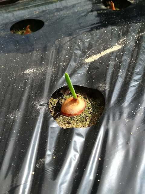予定より早めに播いた冬採り玉葱ですが、芽が出ているものがありました。