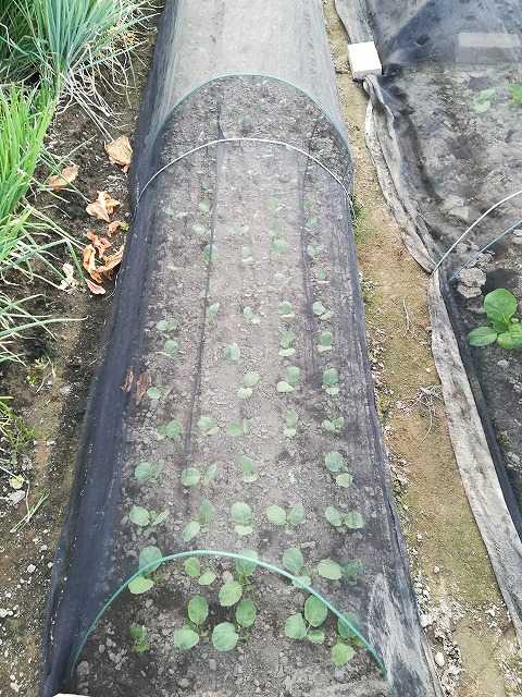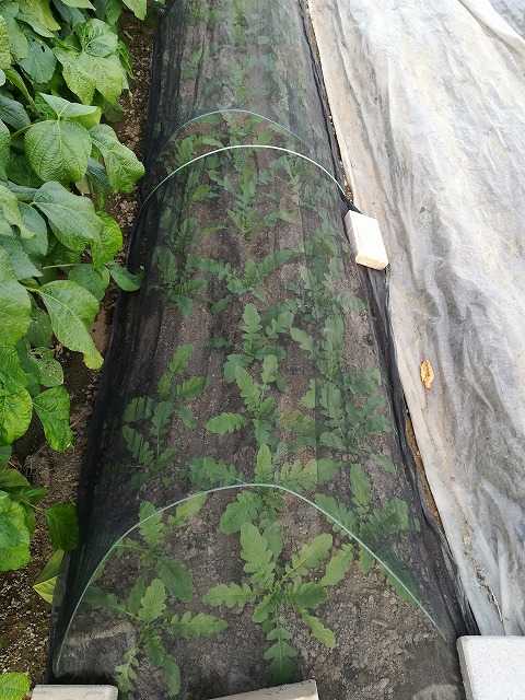 小さな作物や苗類に寒冷紗を掛けておきました。