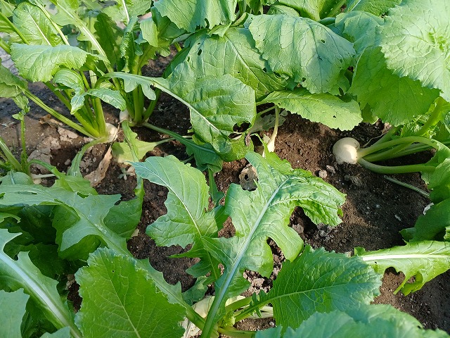 今のところ虫の食害はない感じで、綺麗な肌のカブです。