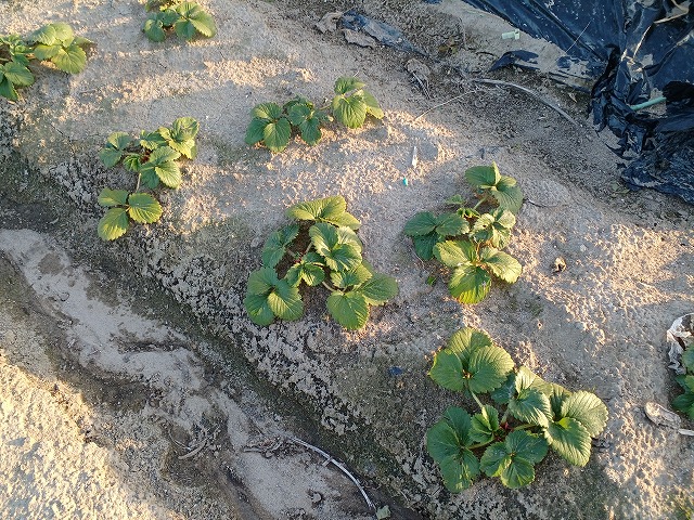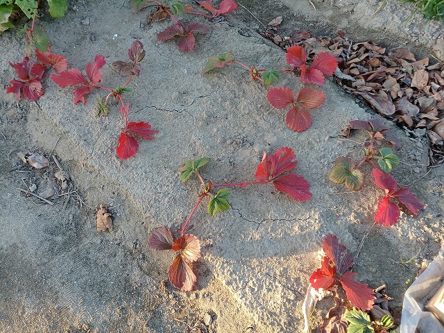余っていた苗をあとで少し植えたものはなぜか葉が紅葉していました。