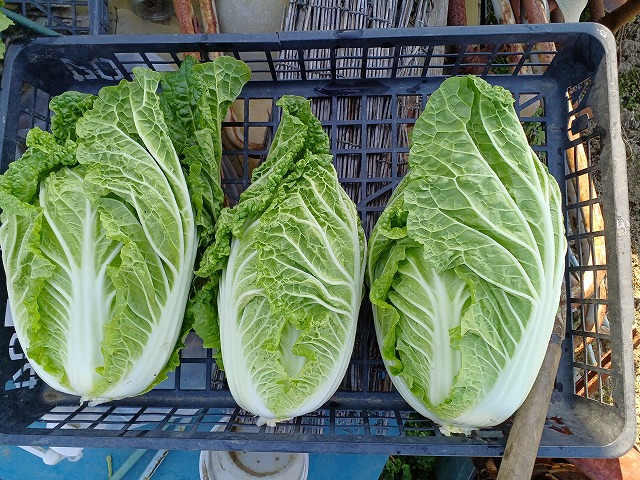 この時期はやはり虫の食害はなく、綺麗な白菜が取れます。