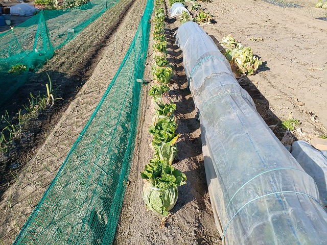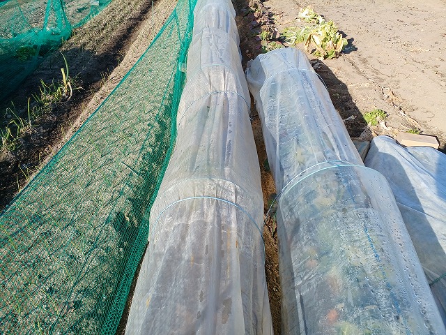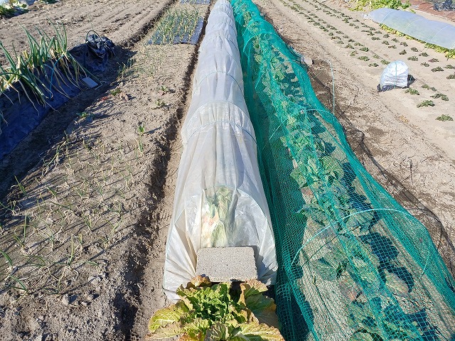 これは掛けていないものですが、結球促進、寒さ防止にハチマキはしています。