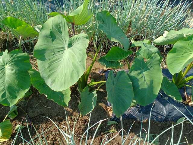 サトイモは暑さのせいか大きくなりません。