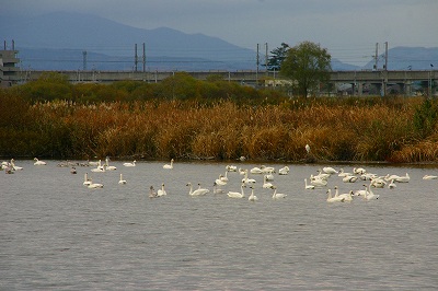 江合川にも白鳥がいっぱい来ていました。いつもの餌場の近くから、新江合川の分岐点までで168羽でした。白鳥がカモ(カルガモを除く)より多いカモです。(今年から原則エサをあげないようにと呼びかけています)カモはカルガモがいっぱいですが、その他には私が確認したのはオナガカモ、ヒドリガモだけです。白鳥もいつもはオオハクチョウのみですが、今年はコハクチョウの姿も見られました。土手に誰かが捨てたと思われる大型家具が置き去りにされていました。オオハクチョウとコハクチョウ