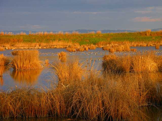 蕪栗沼はわが町にあるラムサール条約の登録湿地です。太陽が沈んで夜の帳がおりる頃になると、マガンがねぐらの沼に帰ってきます。沼は一晩中ガンたちの鳴き声に包まれます。日中いるのはオナガカモ、マガモとサギたちです。