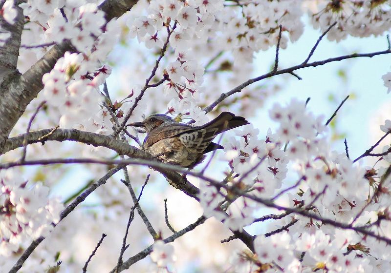 五輪堂公園の桜の木には多数のヒヨドリが飛び回っていました。カシラダカの姿も見かけました。