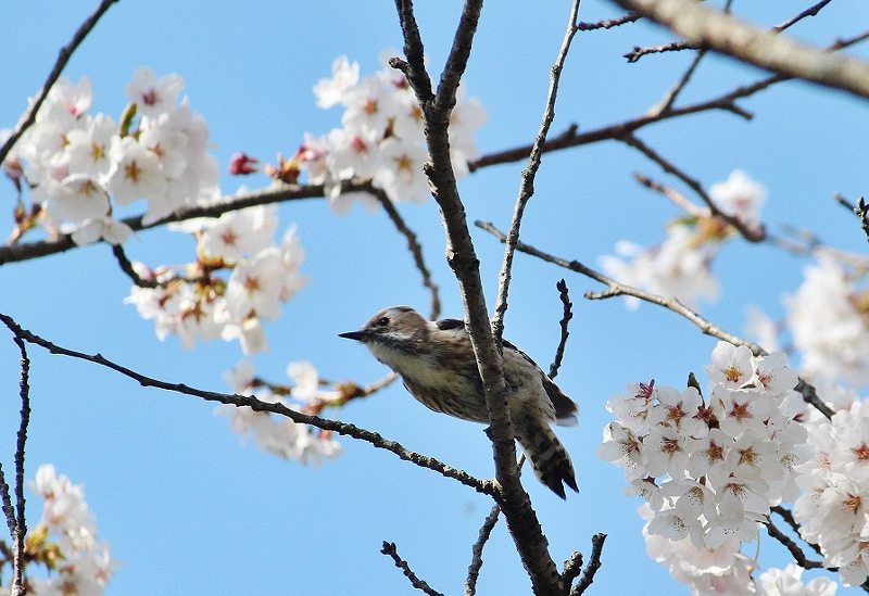 明日桜まつりを迎える五輪堂公園の桜の木には多数のヒヨドリが飛び回っていましたが、コゲラの姿も見えました。