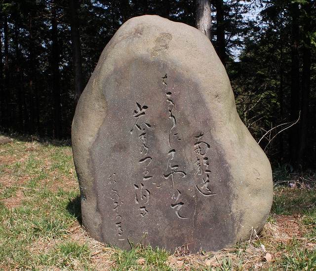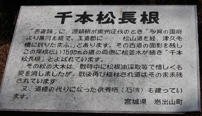 芭蕉の通った道「上街道」には芭蕉の碑がありました。 「南部道遥にみやりて、岩手の里に泊る」 「南部道」は南部街道(奥州街道の内)。「岩手の里」とはは岩出山のことです。「岩出山」は、室町時代から「岩手沢」と呼ばれていましたが、 伊達政宗が1951年に岩手沢城に移った時に「岩出山」に改めました。この松林には多数のショウジョウバカも咲いていました。