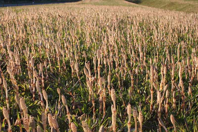 化女沼の近くの宮沢遺跡の草地は土筆がいっぱい咲いていました。こんなに群生するためにはどんな条件があったのでしょうか。空には猛禽類がノスリとミサゴです。ミサゴノビタキ ♀ (クチバシに着いたものでモズかと思いました。httさんより教えてもらいました。)