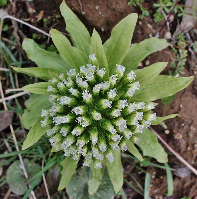 庭の蕗の花もだいぶ大きくなりました。「路傍の草」蕗は雌雄異株です。 根が地下茎で広がるので、雄株の周りは雄株だらけです。 白っぽいものが「雌株」、黄色を帯びたものが「雄株」です。やっと遠目に雌株と雄株の区別が出来るようになりました。 我が家の庭には、今年は雌株が多いです。 雌株は花が終わると茎が大きく伸びます。(背丈は1mにも) (薹が立つのは「雌」株だけで、盛りを過ぎる。時期が過ぎる意味に) 雄株はすべて両性花(オシベとメシベの両方あるが、稔らないので機能的に雄花です。雌株雄株雄株と雌株
