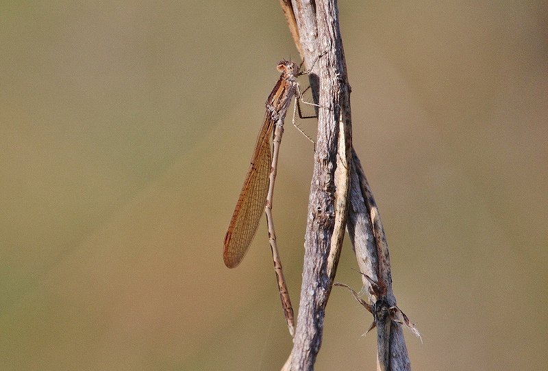 化女沼の梅林にはトンボもいました。冬越しした越年トンボです。梅林から見る上弦の月が梅の花のようです。