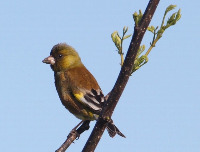 近くの江合川の小鳥たちです。庭でも菜の花が実をつけ始め、カワラヒワの姿が見られます。カワラヒワ 河原鶸オオジュリン 大寿林 コジュリンかも?