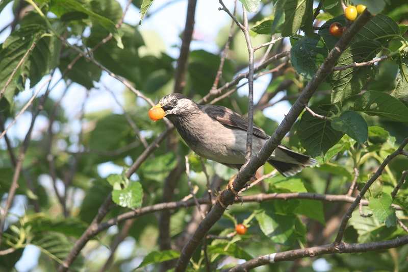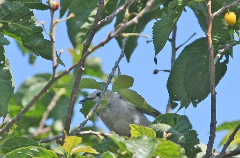 我が家のサクランボは、この二日間で一つ残らずと言っていいほど食べられました。ヒヨドリとムクドリ、2,3羽くらいでしたが。それにコムクドリとオナガガ参戦しました。オナガはカケスと同じカラスの仲間ですが、警戒心が強くとらえるのに苦労しました。部屋の中から、窓越しです。 オナガ 尾長近くの電線に