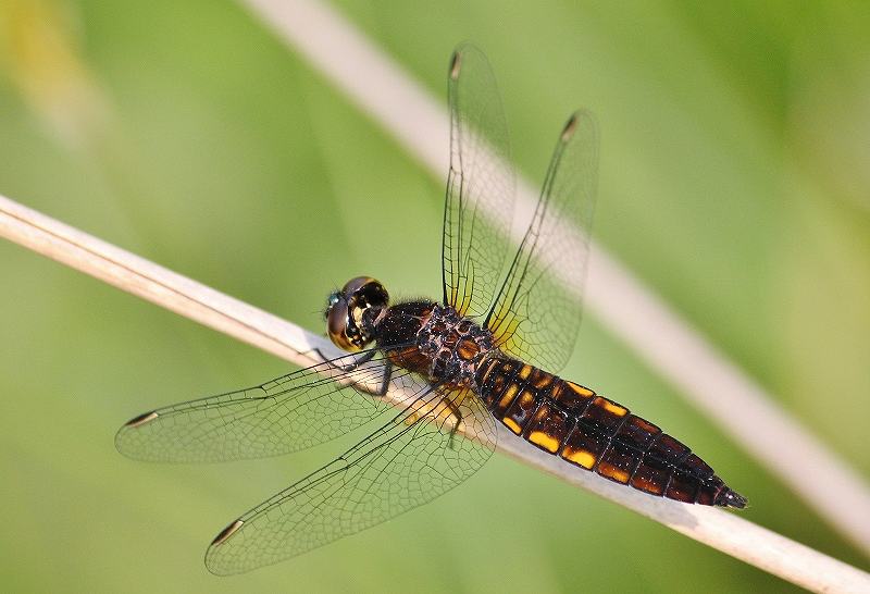ニッコウキスゲが咲き始めた化女沼でトンボも見かけられるようになりました。毎年同じ場所に同じトンボやチョウを見ることが出来ます。自然環境が変わらないで保たれているのでしょうね。オス まだ成熟していないようです。もう少しすると青くなります。メス目が青いです。