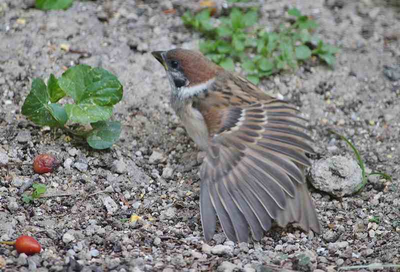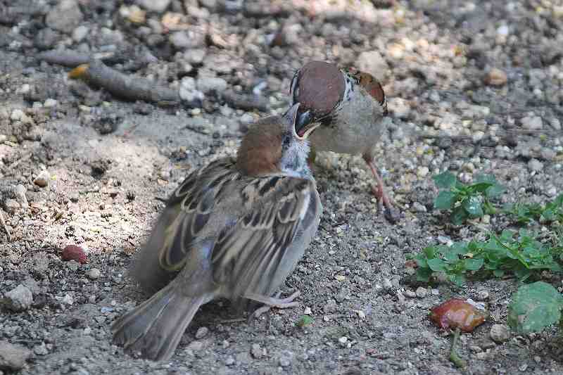 我がやの庭にスズメの雛がやってきました。これから子育てを見ることが出来そうです。スズメの雛は、くちばしが黄色です。体は大きいですが、親の口うつしにえさをもらいます。