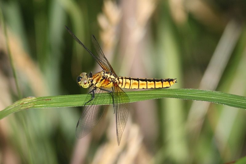 化女沼で1か月前に見かけたハラビロトンボがまだいました。生育期間が長いですね。オスはだいぶコナがふき始めていましたが…このトンボのコバルトブルーの目の色が素敵です。