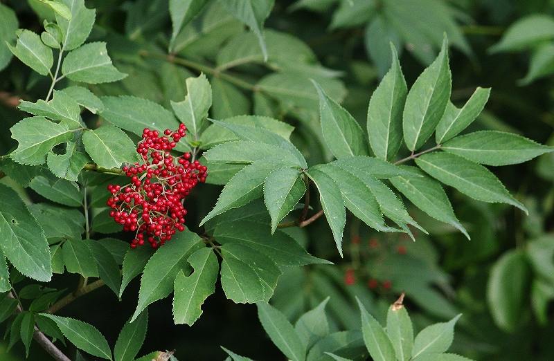 化女沼の林で赤い実のついた木がありました。秋でもないこの時期に実がつくものがあるのですね。調べてみたらたぶんニワトコではないかと。
