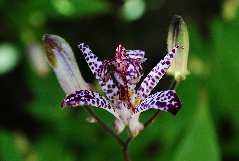 庭にホトトギスの花が咲きました。花の様子からホトトギスとタイワンホトトギスの交雑種(園芸品種)のようです。庭の花ノコンギクには蝶たちが来ます。キチョウモンシロチョウ