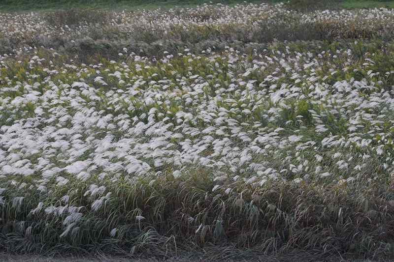 近くの江合川は河川敷は荻の白い穂が揺れています。セイタカアワダチソウが少し黄色の穂をつけ始めたところです。河原の情景です。 YOUTUBE → オギ東北地方の稲のかけ方は長野とは違います。今は刈り取りと同時に脱穀しますがね。ノブドウも色ずき始めましたヘクソカズラスズメウリキカラスウリ(黄色)まだ色づいていません。宮城南部がカラスウリ(赤橙色)の北限とか。