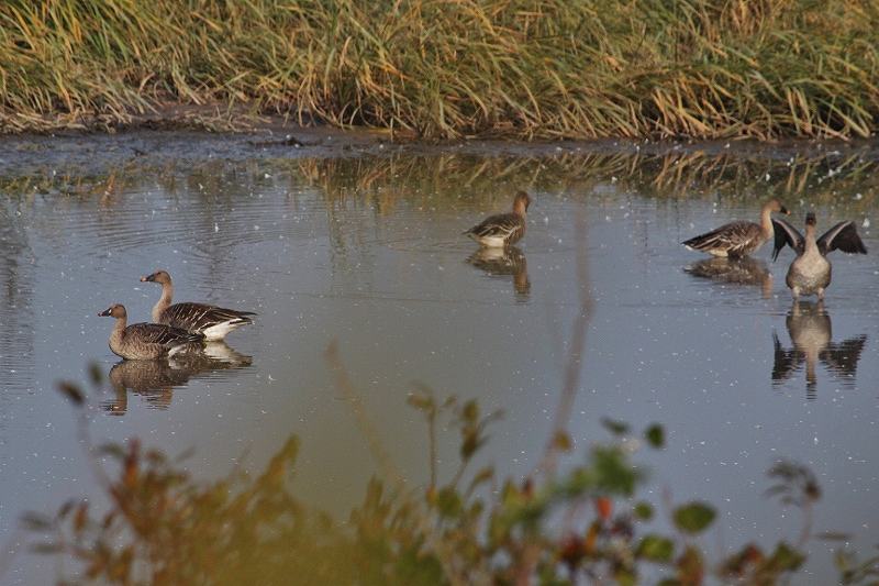 蕪栗沼にガンも飛び立った後も、ゆったりとしているガンはオオヒシクイです。今の時季、ここでもモズの声が聞こえました。
