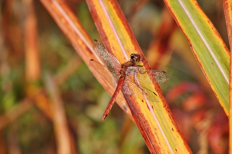 蕪栗沼の周りの歩道には、多数のアキアカネが飛んでいました。 ここでは家の周りを含めアキアカネが見られますが、最近見られない県が増えているそうです。 最近アキアカネをレッドリストに載せたのは 大阪、兵庫、三重、富山、長崎、徳島、鹿児島県です。 日本のレッドデータ検索 減少した原因は「ネオニコチノイド系」という農薬だと考えられています。 田植え後に農薬を使う回数を減らせることで普及してきました。 アキアカネの減少と同系農薬の普及が始まった時期はともに90年代で、 農薬の残留濃度が高い地域でトンボの種類が少ないようです。ノブドウにツルウメモドキ どこにいるかわかりますか?ノシメトンボもいました。 セイタカアワダチソウタンポポ