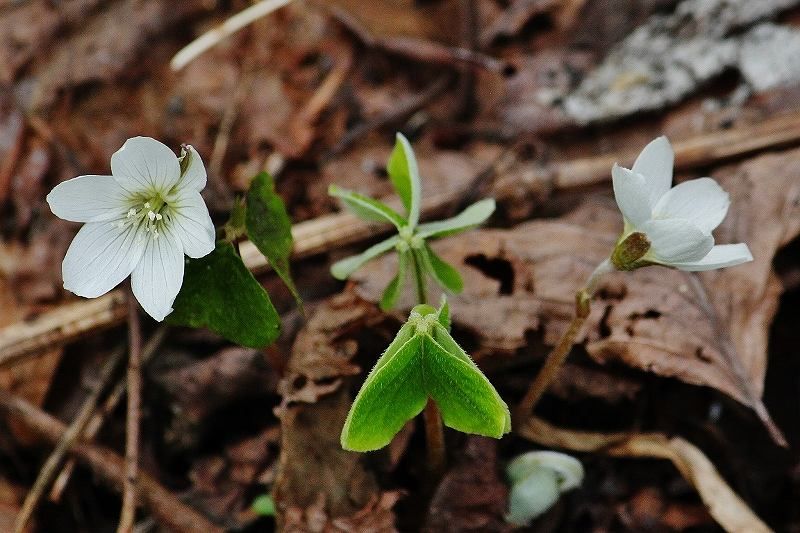 荒沢湿原では水芭蕉も葉が茂り始めていますが、遊歩道の周辺には春の花々が咲いていました。春を告げる花々はスプリングエフェメラルです。ミヤマカタバミカタクリニリンソウキクザキイチゲ