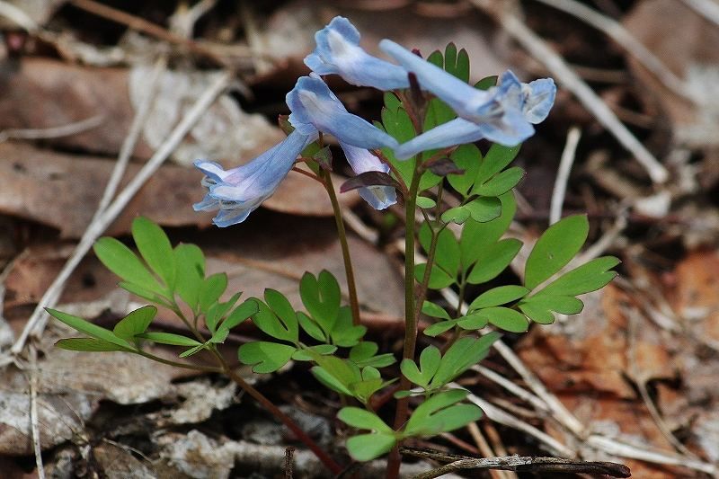 荒沢湿原の春の花々です。この花もここでいつもみられる花です。今年は色が少しくすんでいるようですが。オトメエンゴサク(乙女延胡索)