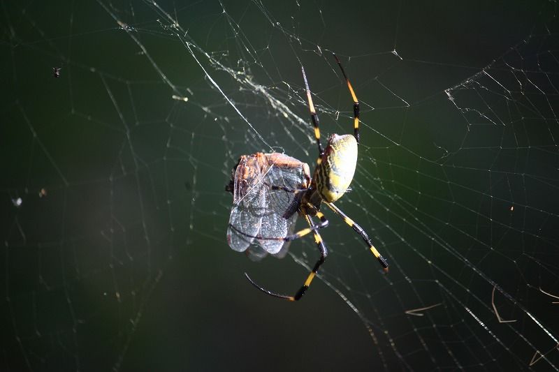 いこいの森のクモです。ジョロウグモ(女郎蜘蛛)吾亦紅モミジバフウ 紅葉葉楓ジョロウグモ(女郎蜘蛛)