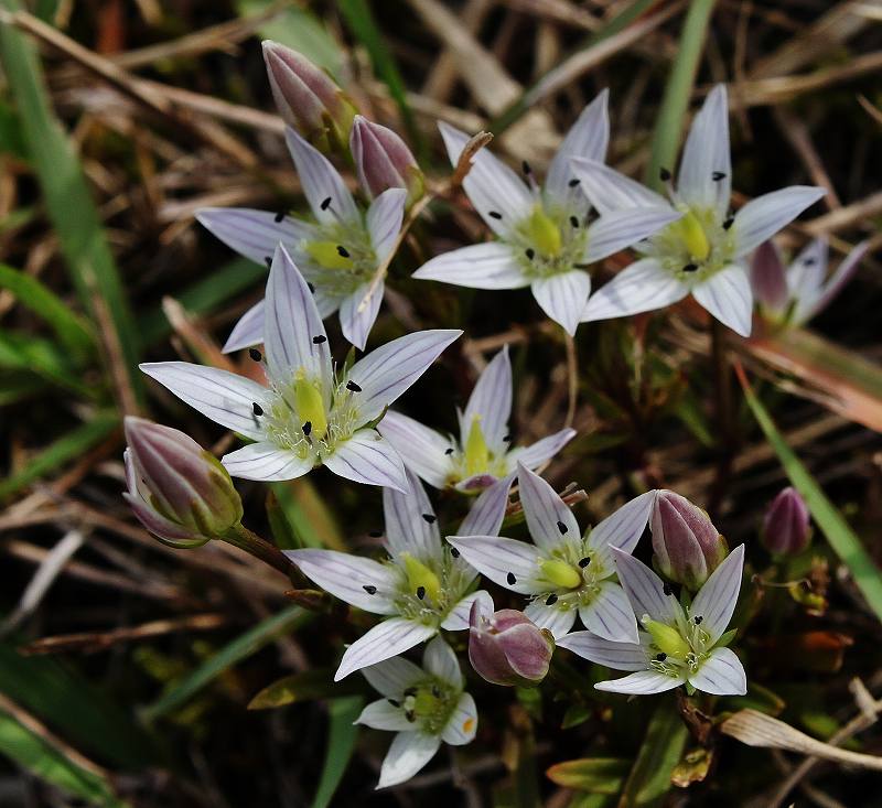 化女沼の宮沢遺跡の芝生にセンブリがいっぱい咲いていました。センブリ リンドウ科 「千振」、「当薬」センブリは強い苦味があります。苦さは、葉を虫に食べられないためです。 千回振り出し(煎じ)てもまだ苦味が残るということです。 「良薬は口に苦し」で苦いものは体にも心にも効くようです。 昔はノミやシラミを殺す殺虫剤としても利用されたそうです。 皮膚の血行促進作用から、最近育毛剤としても利用され、円形脱毛症への効果もある そうです。私は薄くないので、薄い人は試してみてください(^.^)