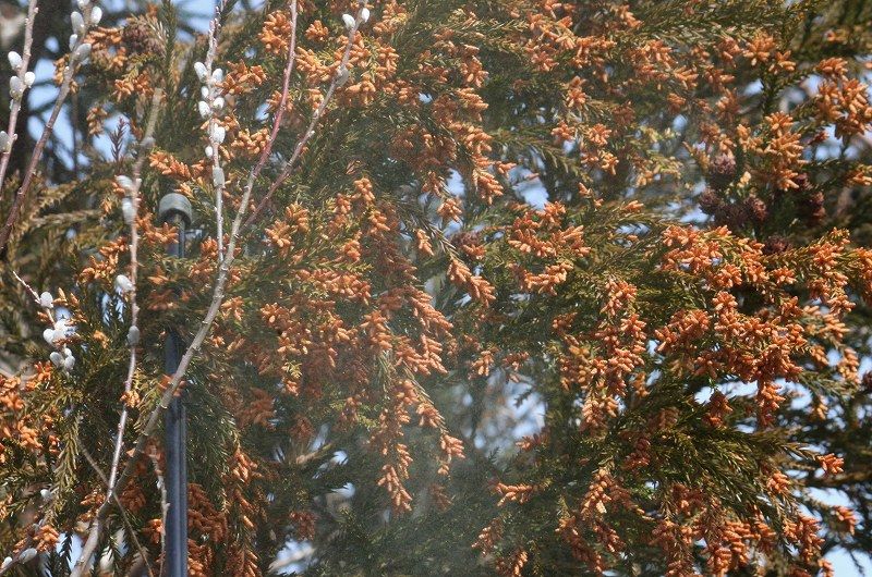 化女沼の杉の木もだいぶ黄色味を帯び出来ました。カメラの三脚で触ったら白い粉の煙が飛びました。化女沼の小鳥たちです。スギ花粉エナガミヤマホオジロマヒワツグミが多いです。草地を群れで走っていますコブシの蕾もだいぶ膨らみましたネコヤナギ