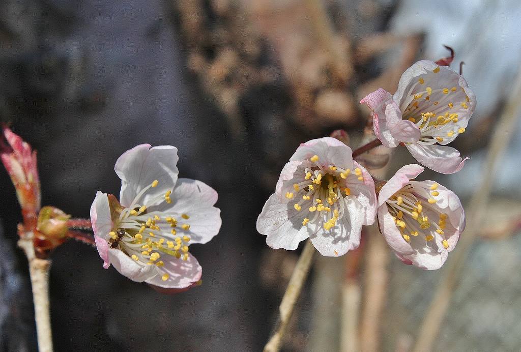 我が家の庭の桜が咲きました。我が家の庭の桜はサクランボの桜で、一足早く咲きます。近くの公園の桜はまだまだです。昨年暮れに桜の木を切ってしまったので、幹についている僅かな桜です。梅は盛りを過ぎています梅と桜の花びらの違いです。 桜は花びらがハートです。 💛 💛 💛