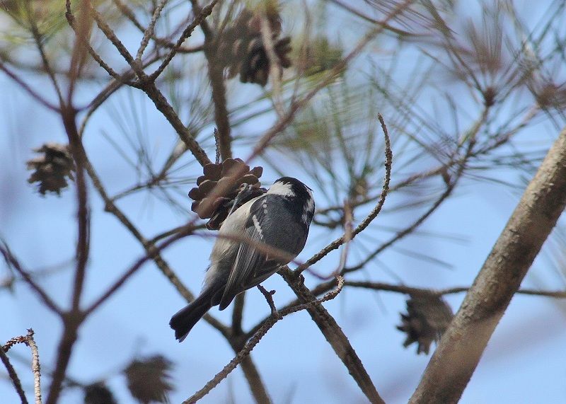 化女沼の小鳥たちです。松林の松の実に小鳥たちが飛び交っています。ヤマガラ ヒガラカシラダカ