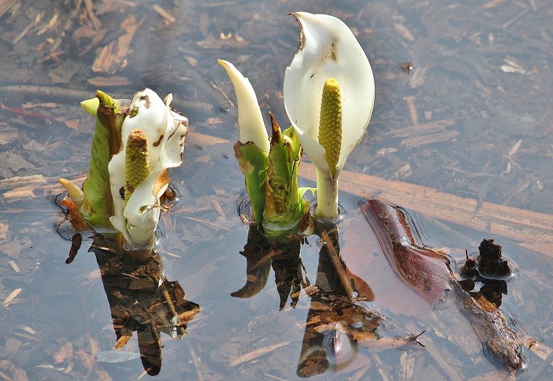 今年は暖かいので、いつもは4月中頃に行く荒沢に行ってきました。何時もは雪で入るのも大変ですが、今年は全くありません。水芭蕉が少しだけ咲き始めていました。観察館の職員さんの話では、雪がないと霜で水芭蕉の花が黒ずむと言っていました。熊も姿を見せているそうです。