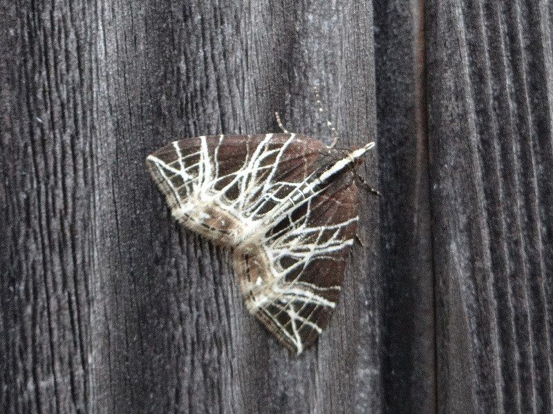 今期2回目の荒沢湿原です。寝ぼけ眼で起こされたので、つい一眼レフを忘れて行って証拠写真になってしまいました。セスジナミシャク(背条波尺蠖) 目の前で観察館の壁にとまりましたアカハラコサメビタキ