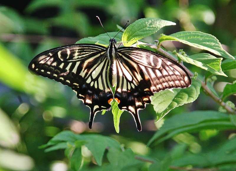 庭のチョウです。ナミアゲハ庭の花ガクアジサイ