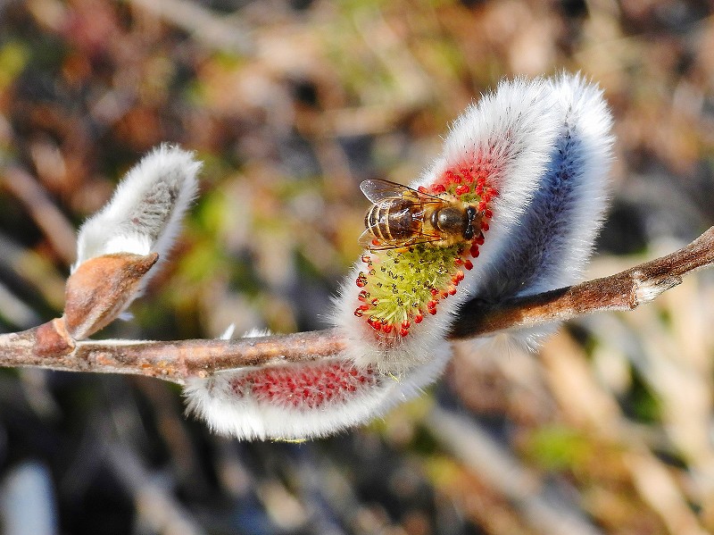 近くの江合川のネコヤナギの花が咲き始めました。ネコヤナギは雌雄雄株なので、これは雄株です。ネコヤナギ