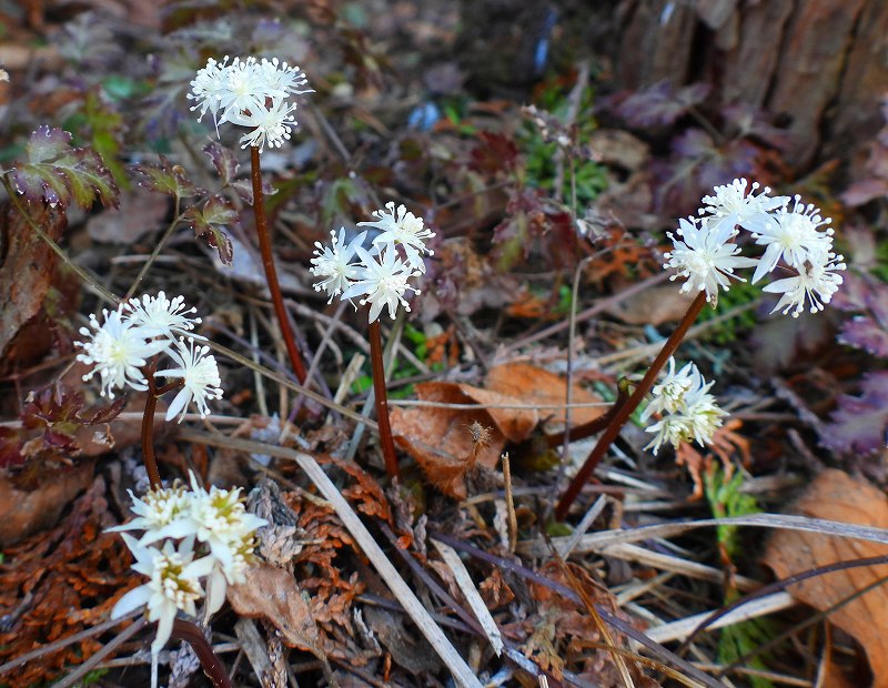 我が家の庭の野草の花々です。セリバオウレンショウジョウバカマフキ 雄株
