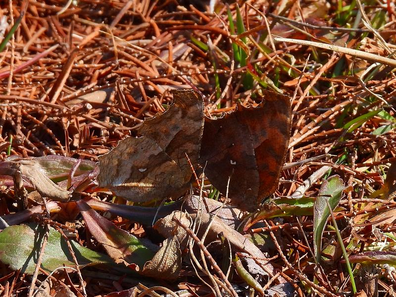 いこの森のひだまりにキタテハが愛をささやいていました。たぶん越冬したキタテハは目覚めると子孫を残そうとしているのでしょうね。愛して間は周りが見えなくなるのか近づいても逃げません。キタテハ 黄立羽