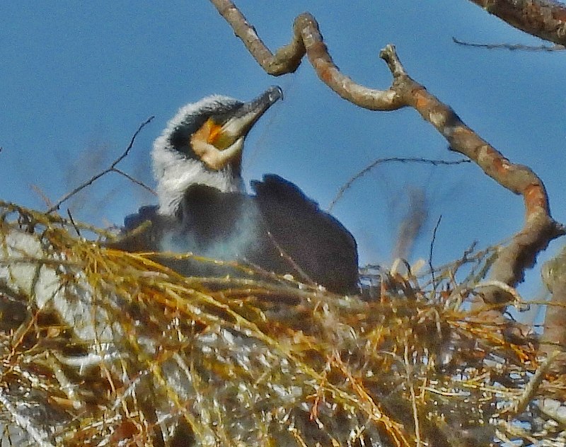 江合川の木の枝に巣を作っているカワウを見ると、多くが白髪です。白髪とはカワウも老いたのかと思って調べると恋の白髪だそうです。恋の季節 「カワウ」の頭が白髪になるのは婚姻色です。
