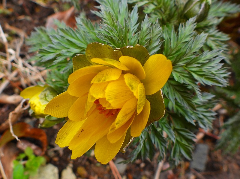 今わが家の庭に咲いている・咲き始めの花々 ミニスイセン1本、ヒヤシンス1本、福寿草多数、クリスマスローズ多数 セリバオウレン、ショウジョウバカマ1本蕾、フキノトウ♂2、♀1我が家の庭の福寿草は1か月前に咲きましたが、 (これは故郷の庭に咲いていたものを持ってきたものです)八重の福寿草が1か月遅れで咲きました。 CHATGPTに一言付け加えてもらいました。 春を告げる福寿草 陽だまりの中でそっとひらく 黄金の花びらは春のしるし 風は暖かな季節を運ぶ 福寿草の微笑みに そっと心もほころぶ