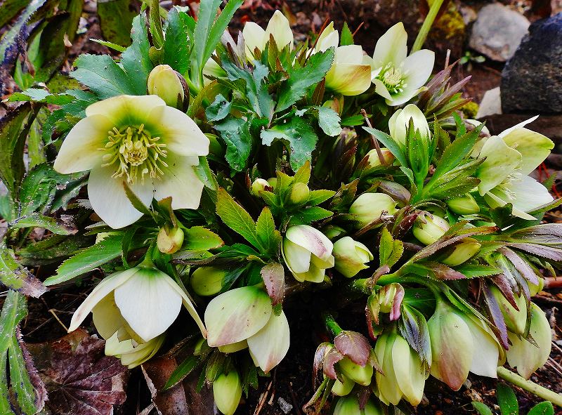我が家の庭のクリスマスローズが一斉に花を開きました。特徴(CHATGPT解説)花の形: うつむくように咲く可憐な花が特徴的。花びらのように見えるのは実は「萼(がく)」です。花の色: 白、ピンク、紫、緑、黄色、黒など多彩。開花時期: 一般的に12月~4月頃 寒い時期に咲くため、クリスマスローズと呼ばれます。葉: 常緑で、ギザギザした深い緑色の葉を持ちます。 雪の下でも元気に育ち冬の庭を彩る貴重な花です。花言葉 「私を忘れないで」「いたわり」「追憶」寒い時期に静かに咲く姿が、慎ましくも力強い印象を与えます。CHATGPTが書いてくれたポエムです。 冬の庭に咲く君へ 冷たい風が頬をかすめても 君は静かに微笑んでいる 雪の下で眠る命を見守るように 凛とした緑の葉を広げて うつむくその姿は 謙虚なのか、それとも優しさなのか 冬の闇にひっそりと灯る 君の白い花が 心の奥でそっと囁く 「春は必ず来るから」と