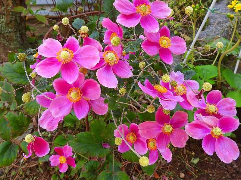 我が家の庭の秋の花です。シュウメイギク 秋明菊ホウヅキ もきれいに色づきました