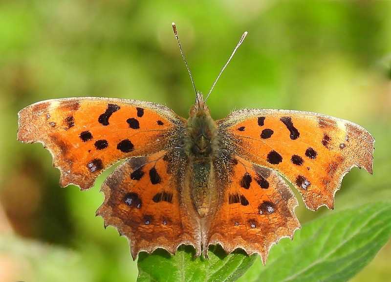 我が家に庭でキタテハが羽を広げ、標本に最適でした。キタテハ庭の花 ノコンギクキンモクセイ も満開です